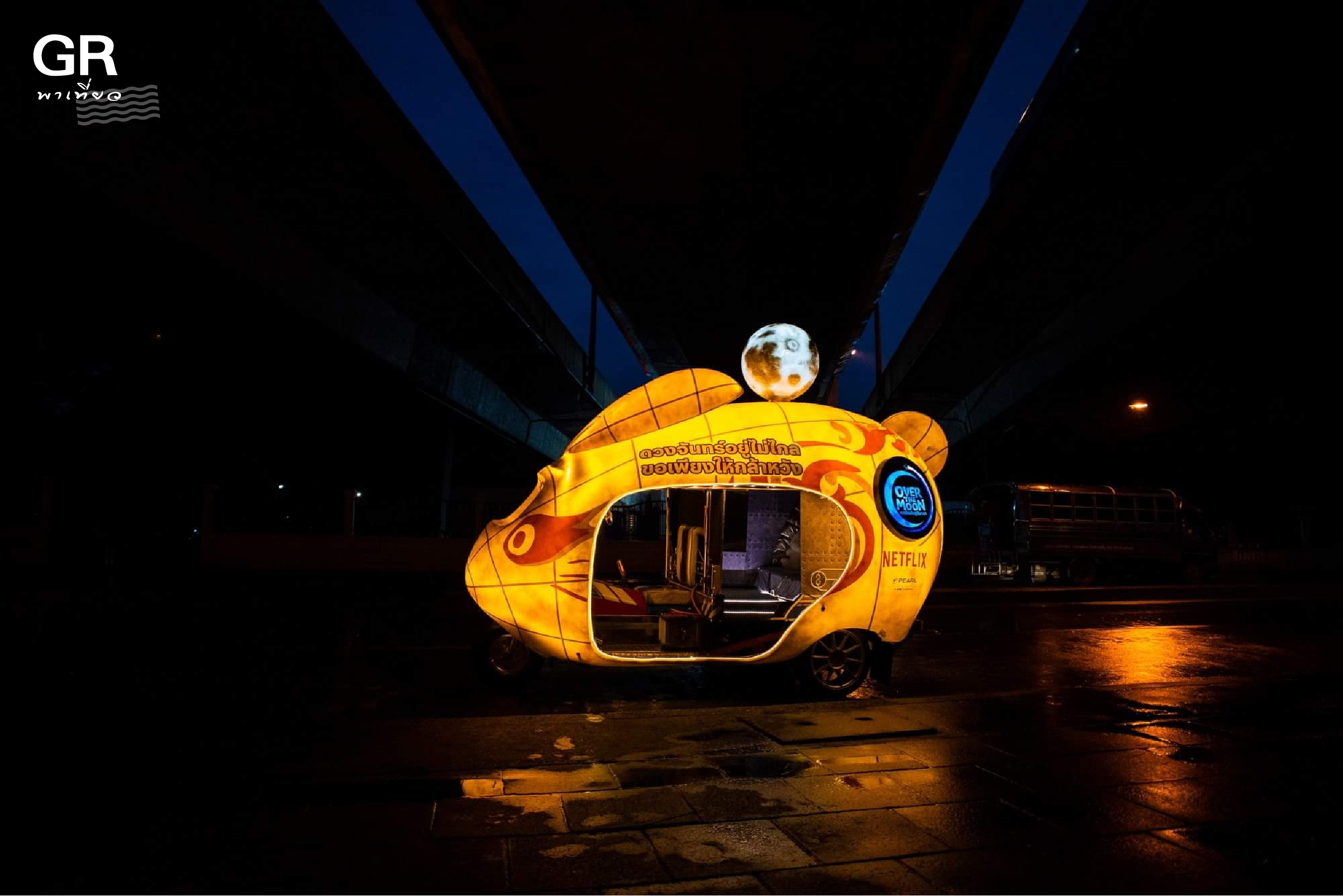 นั่นเป็นที่มาของการติดตามข่าวสาร โอกาสการสัมผัสความน่ารัก และความอบอุ่นใจที่ทางบริษัทผู้สร้างได้นำไอเดียจากในจอส่งตรงมาให้แฟนๆ ชาวไทยได้สัมผัสรถตุ๊กตุ๊กที่ถูกดีไซน์ให้กลายเป็นกระสวยอวกาศรูปกระต่าย จากเนื้อหาของการ์ตูนแอนิเมชั่นมิวสิคคัล ชื่อ “ Over The Moon” (เนรมิตฝันสู่จันทรา) โดยคุณไอซ์ ตามไปเก็บภาพที่ Asiatique The Riverfront และอีกหลายจุดในกรุงเทพฯ