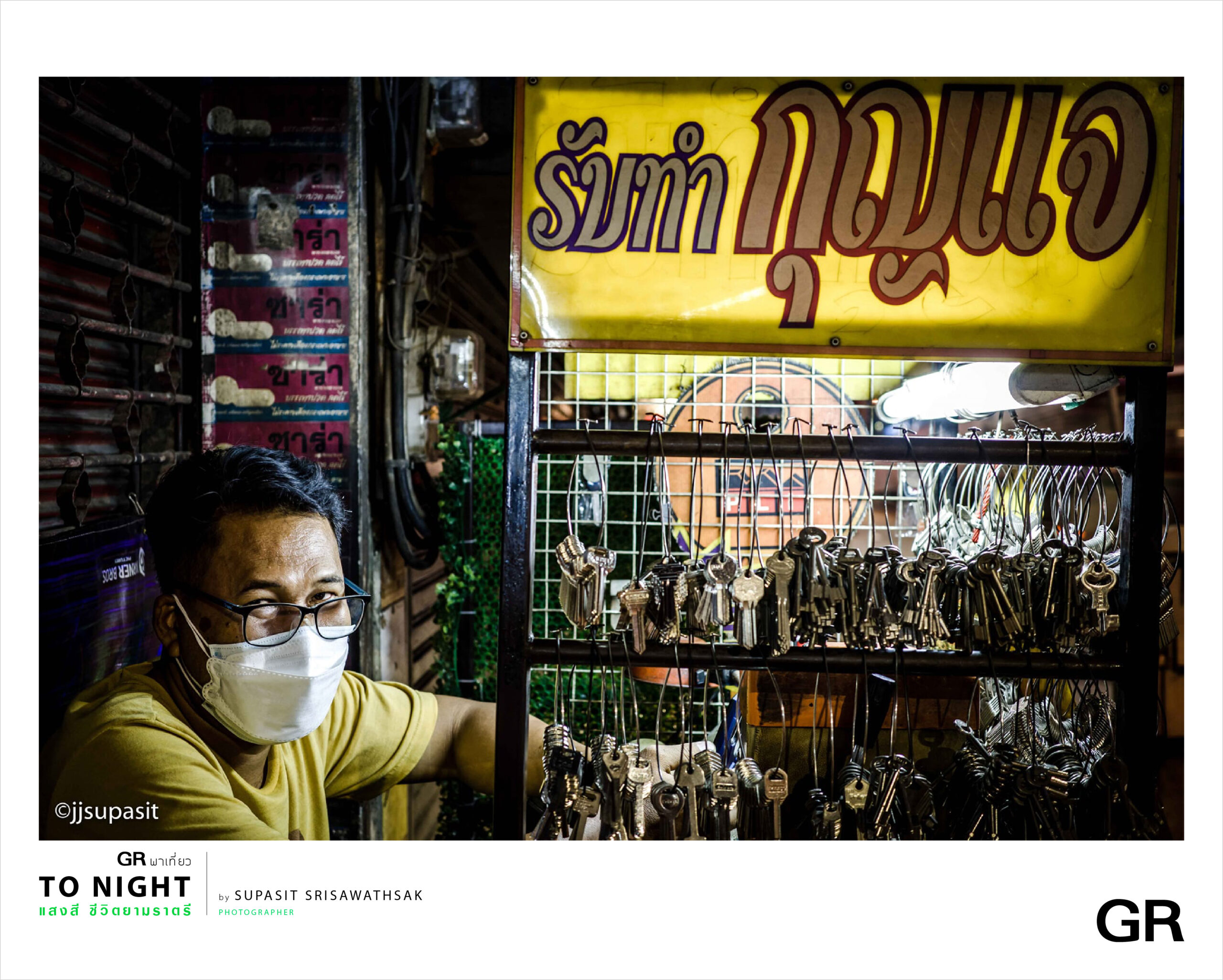สถานีรถไฟฟ้า ร้านอาหาร ร้านค้า ป้ายรถเมล์ พื้นที่สาธารณะเหล่านี้ล้วนแต่เห็นจนชินตา แต่กลับไม่ค่อยเห็นภาพสะท้อนการใช้ชีวิตของผู้คนในยามราตรีเท่าใดนัก กล้องGR ให้ความเป็นมิตรได้อย่างดีในการเข้าเก็บภาพในระยะประชิด อันเป็นผลมาจากขนากบอดี้ที่เล็กกะทัดรัดไม่ว่าคุณจะอยากถ่ายทอดเรื่องราวในแนวใด ด้วยเทคนิค Stop Action หรือเทคนิคการสร้างMovement ให้รู้สึกถึงความมีชีวิตชีวา โดยไม่จำกัดโทนสีที่ใช้ในการถ่ายทอดก็มักจะได้รับการยินยอมด้วยดี