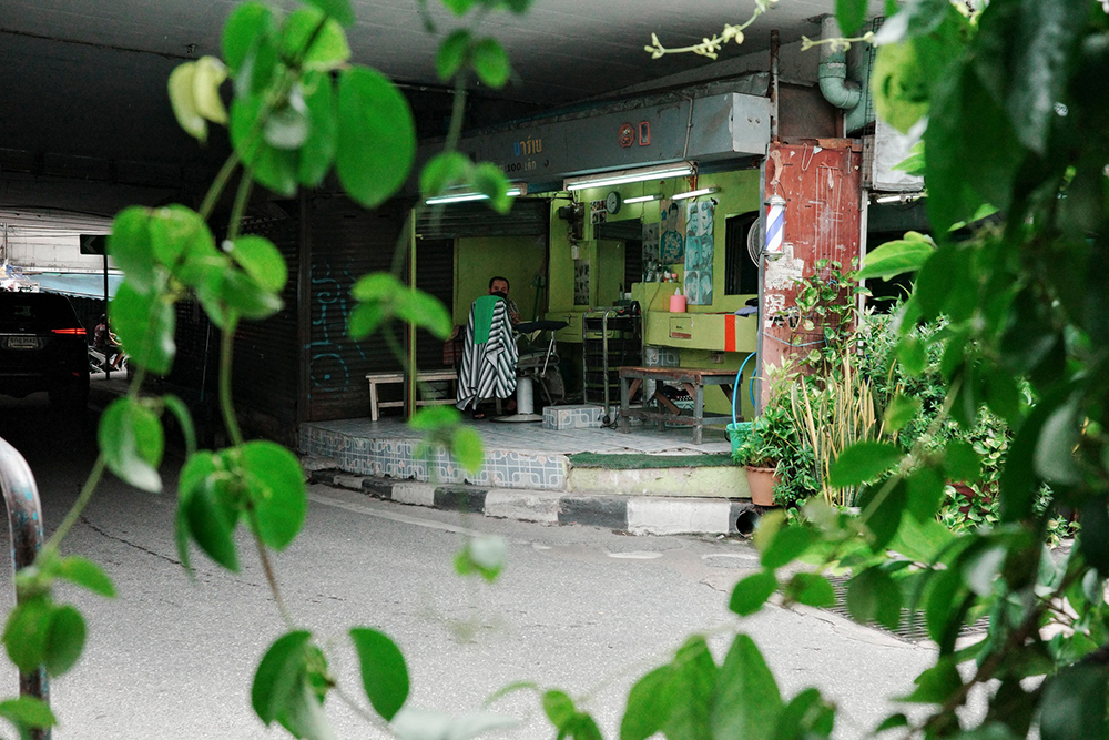ผมเดินเข้าไปด้านในลึกเล็กน้อย ก็ไปพบเจอกับร้านทำผมเล็กๆ ร้านหนึ่งที่ตกแต่งร้านได้น่าสนใจและกระตุ้นความอยากรู้ของผมมากๆ แต่ด้วยความที่เราเป็นแค่คนถ่ายภาพ เลยได้แต่ยืนเก้ๆ กังๆ เก็บภาพอยู่ด้านนอก จังหวะพอดีกับพี่ผู้หญิงเจ้าของร้านมองเห็นผมยืนเก็บภาพอยู่ เค้าก็ทักผมเป็นภาษาอังกฤษ เพราะคิดว่าผมเป็นนักท่องเที่ยวมาเดินเล่น น้ำเสียงและท่าทางการทักทายของพี่ผู้หญิงดูเป็นมิตรมาก จนทำให้เราหายประหม่าและตอบกลับไปว่า “ผมคนไทยครับ” เราหัวเราะพร้อมกัน ความกังวลของผมหายไปหมดในจุดนี้ แต่มีความคิดอีกมุมนึงผุดขึ้นมา ว่าเราลองชวนพี่เค้าคุยแล้วทำเป็นชุดภาพดีกว่า มันเป็นอะไรที่ใหม่สำหรับผมเลย ในการชวนคนไม่รู้จักนั่งคุยกันเล็กๆ น้อยๆ รู้สึกดีไปอีกแบบและเหมือนปลดล็อคอะไรบางอย่างออกจากหัวได้ด้วย ผมเลยขออนุญาตพี่ผู้หญิงนั่งคุยกันเล็กๆ น้อยๆ