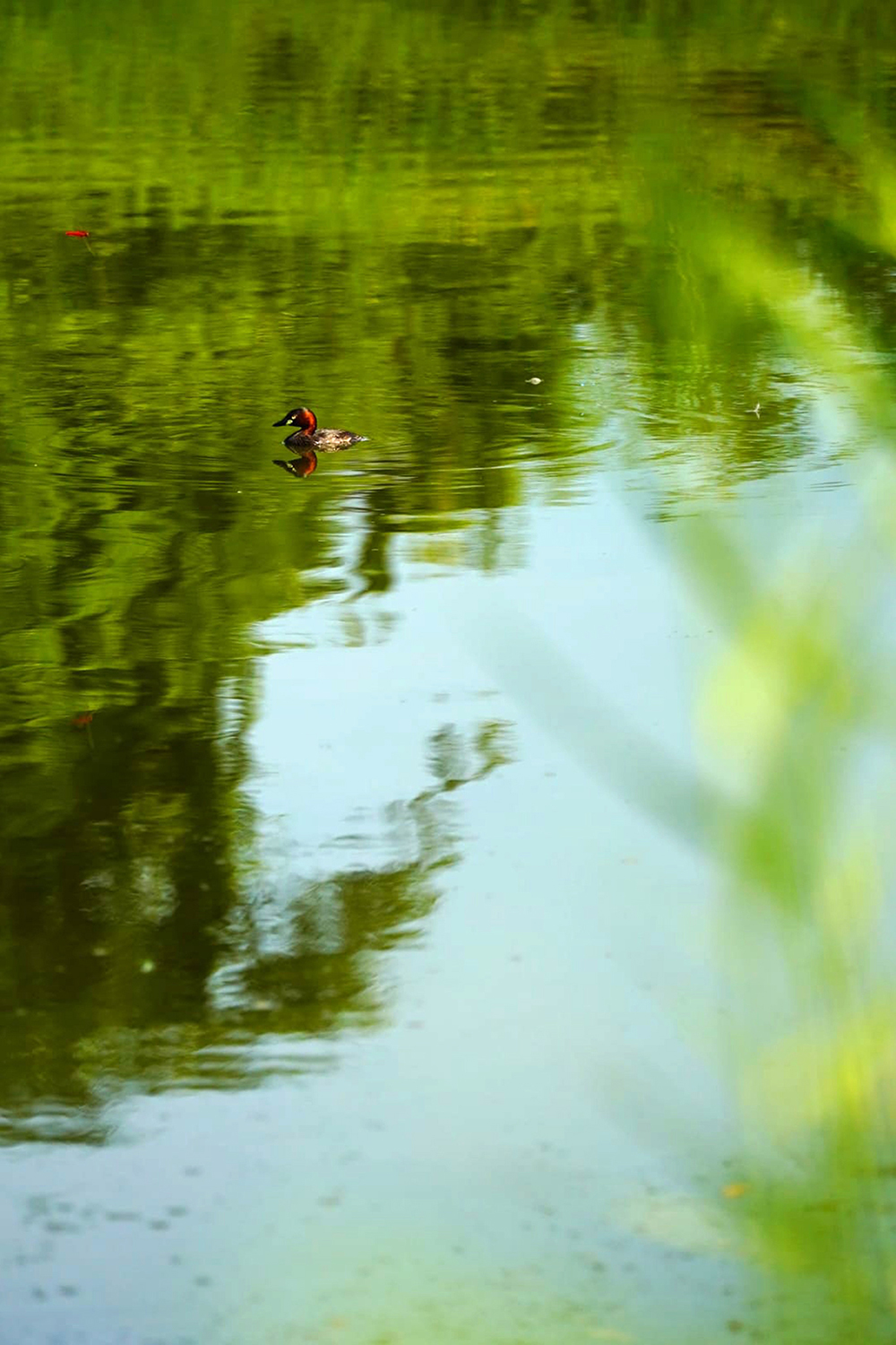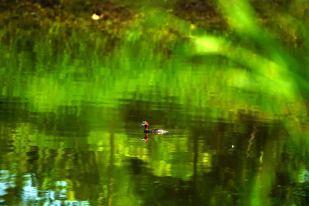 เราก็เจอสัตว์หลายชนิดอยู่เหมือนกัน แต่ที่เด็ดก็น่าจะเป็นเจ้านกเป็ดผีเล็กกับลีลาดำผุดดำว่ายหาอาหารที่เรามักมาซุ่มดูมันบ่อยๆ และก็บอกให้เด็กน้อยอย่าส่งเสียงดัง เจ้านกชนิดนี้จะขี้ระแวงเข้าใกล้มากไม่ได้..เดี๋ยวบินหนีไปซะก่อน ขนาดดึงระยะซูมที่ 300mm ยังต้องเปิดโหมดครอป 1.5x ช่วย เพราะมันว่ายหนีไปไกลแถวขอบบ่อ บางทีก็ไปกลางๆบ่อ เราก็ต้องอาศัยหญ้าริมบ่อหมอบพรางตัว พร้อมสังเกตว่ามันโผล่ไปตรงไหนเวลาดำน้ำหาเหยื่อแต่ละครั้ง แดดก็ร้อนแรงไม่ปรานีเลย.. ถ่ายได้ไม่นานก็ถอยทัพ กลับไปหลบร้อน..ชื่นชมภาพ
