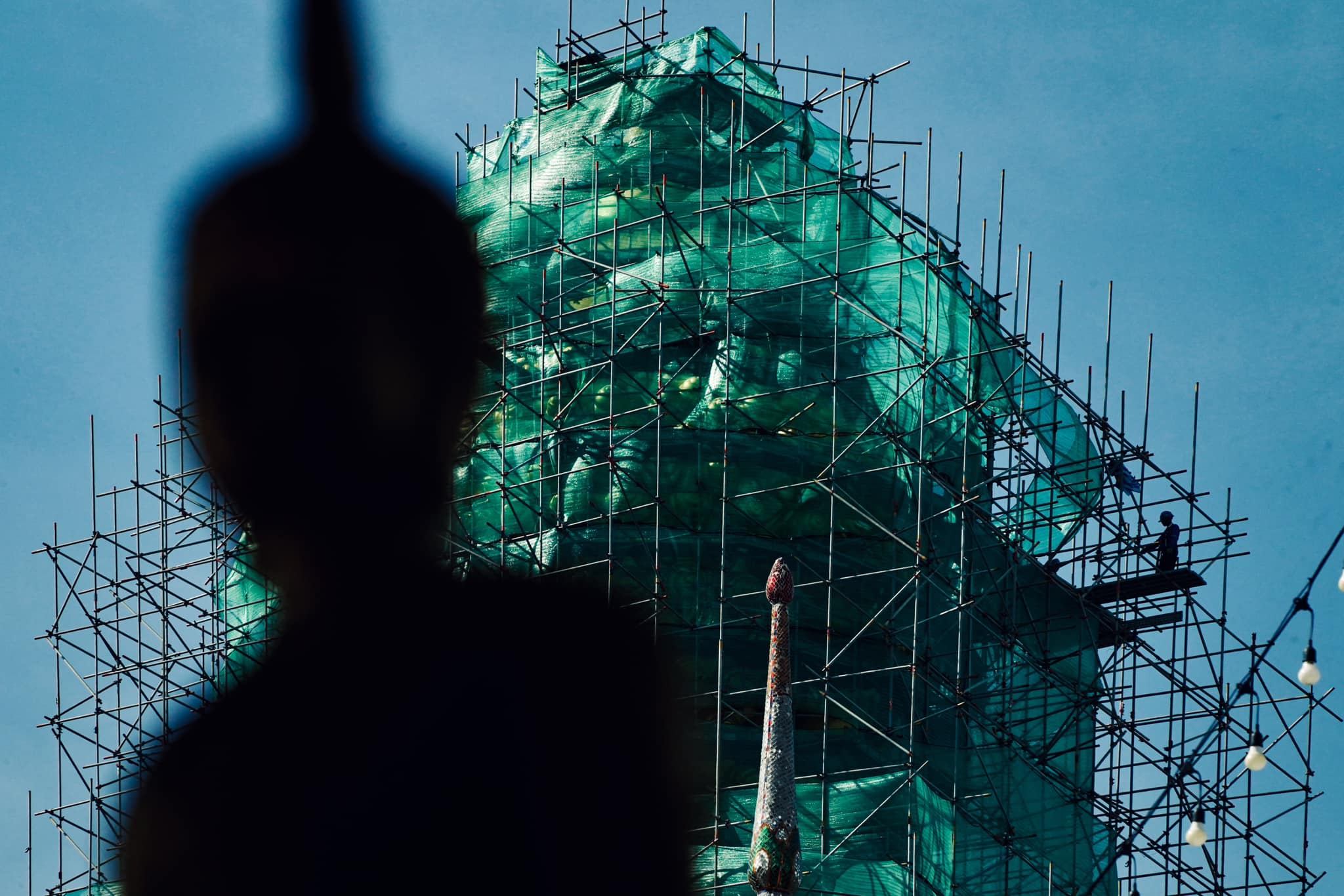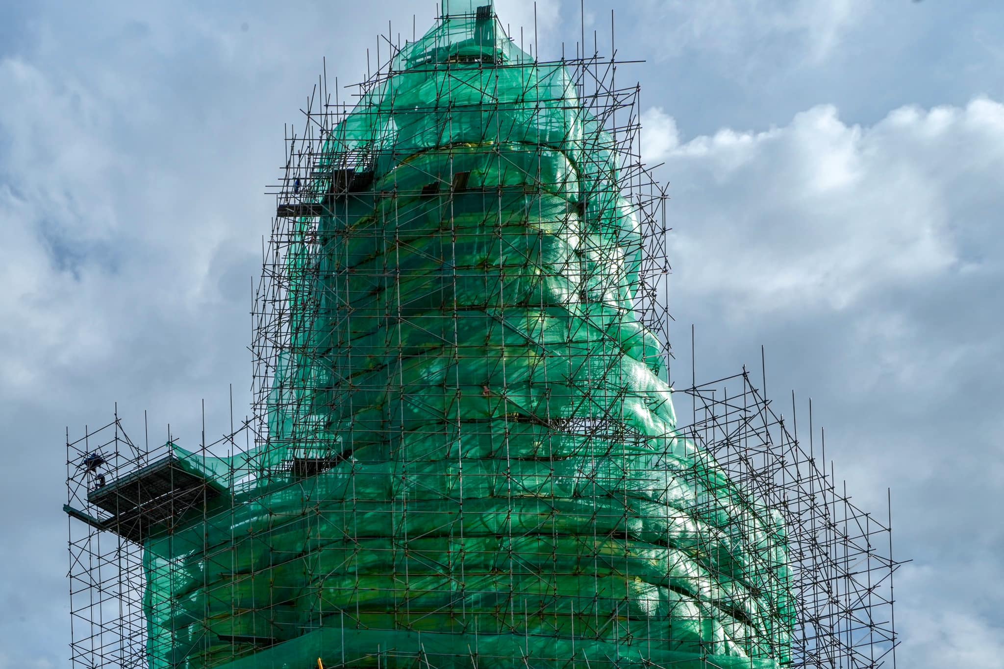 ในช่วงหลายเดือนที่ผ่านมาใครมีโอกาสไปแถวย่านฝั่งธนฯ น่าจะได้เห็นการบูรณะปฏิสังขรณ์พระพุทธธรรมกายเทพมงคล ที่มีนั่งร้านและคลุมด้วยสแลนสีเขียวสูงกว่า 69 เมตร ซึ่งต้องบอกว่าเป็นภาพประวัติศาสตร์เลยทีเดียว ทางคุณเดฟ ภาสกร บรรดาศักดิ์ ก็ไม่พลาดไปเดินเล่นเก็บภาพมาฝากกัน