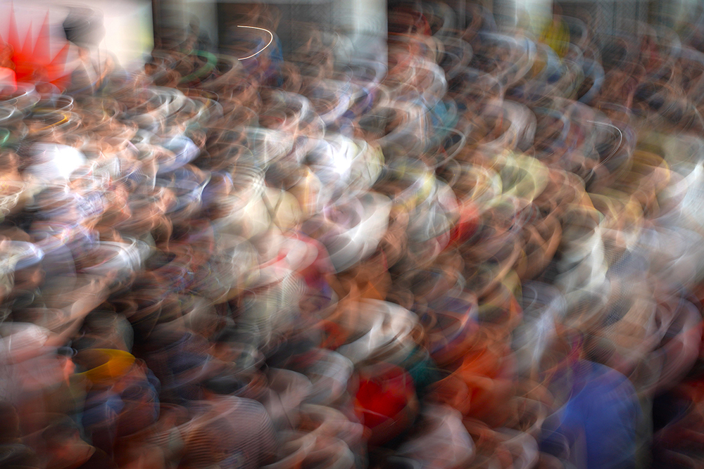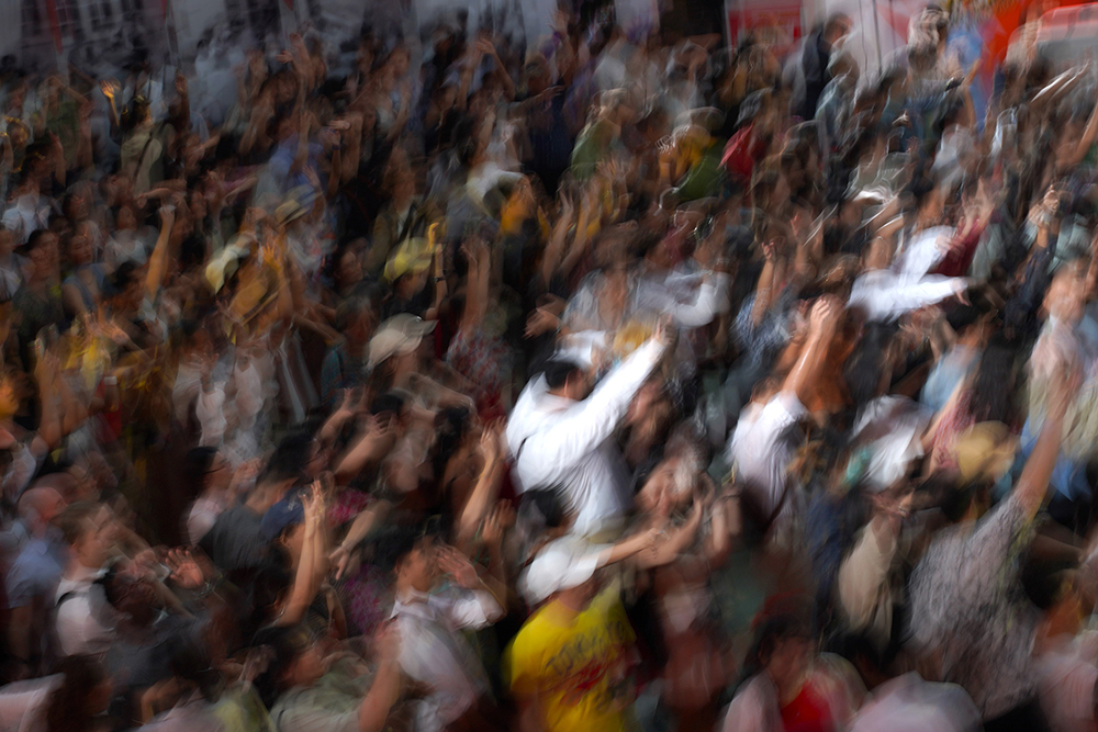 มีโอกาสถ่ายภาพนักเต้นเท้าไฟไปในแบบ Action เยอะแล้ว พอเดินขึ้นไปบนระเบียงเลยเลือกใช้เทคนิคโชว์ Movement บ้าง ด้วยเลนส์ Normal Zoom ธรรมดาๆ ตัวหนึ่ง ระเบิดซูม / แพน / สะบัด / เขย่า ยกโขยงมาผสมโรงกับการใช้ Slow Shutter Speed เทคนิคนี้จะเปิดชัตเตอร์ต่ำ หรือให้เห็นวืดๆ แค่ไหนนั้น ไม่มีถูก ไม่มีผิด ตั้งค่าตามที่อยากให้เป็น อย่างแต่ละภาพตั้งประมาณ 1/8 วินาที และตั้งค่ารูรับแสงประมาณ F16 ผลที่ได้ก็จะกึ่งนามธรรมหน่อย บางภาพก็ดูคล้ายเป็นภาพวาดก็มี แล้วแต่ใครจะเห็น จะจินตนาการเป็นอย่างไร..