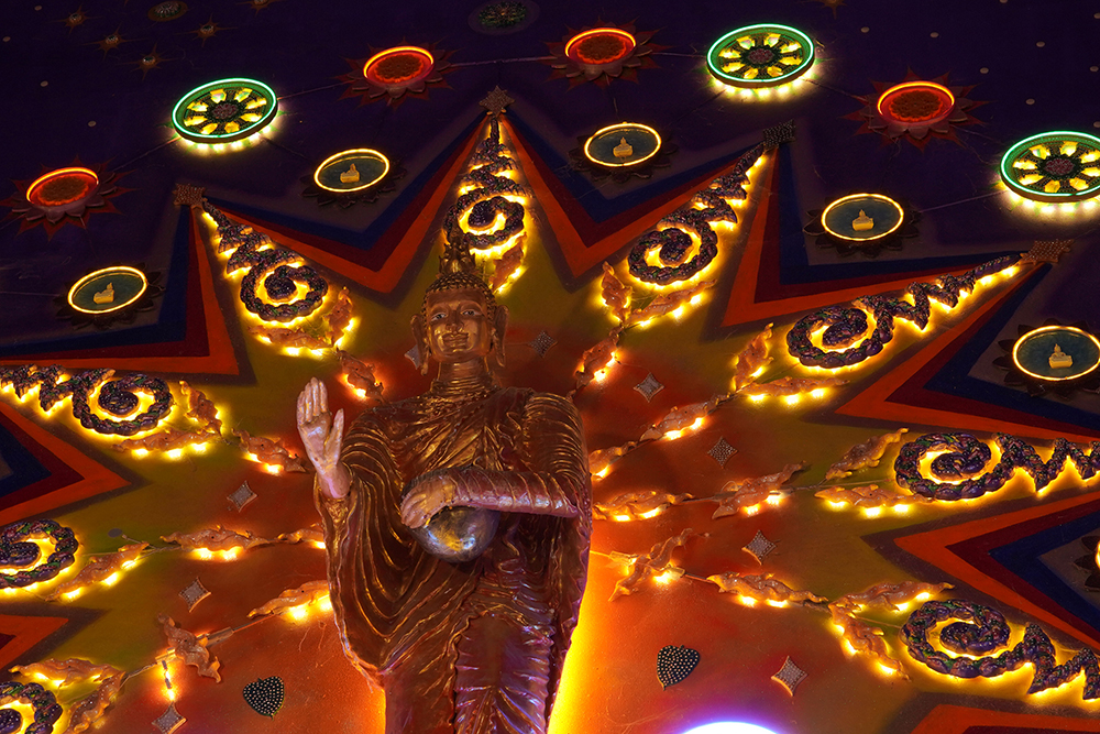 สายธารแห่งศรัทธาทำให้เกิดความวิจิตรของสถาปัตยกรรมภายในโบสถ์วัดกลางคลองวัฒนาราม ซึ่งก็ได้ลองใช้เลนส์เทเลโฟโต้ Tamron 50-300mm F/4.5-6.3 Di III VC VXD (Model A069) เก็บความงดงามในแต่ละจุดมาให้ชมกัน โดยใช้ระยะทางยาวโฟกัสของเลนส์ตั้งแต่ช่วงมาตรฐานไปจนถึงซูมสุดกระบอกเพื่อเก็บรายละเอียดต่างๆในที่แสงน้อย ต้องบอกว่าระบบลดความสั่นไหว(VC) ของเลนส์มีส่วนช่วยให้ภาพยังมีความคมชัดได้ดี เวลาพุทธศาสนิกชนไปกันมากๆเราไม่สามารถใช้ขาตั้งกล้องได้อยู่แล้ว จึงต้องดึงประสิทธิภาพ