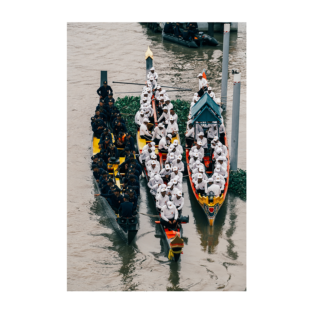 ซ้อมย่อยฝีพายเรือพระราชพิธีพยุหยาตราทางชลมารค เป็นรูปขบวนเรือในแม่น้ำเจ้าพระยา ครั้งที่ 2 เมื่อวันที่ 8 ส.ค. 2567 บันทึกภาพจากบนสะพานพระราม 8