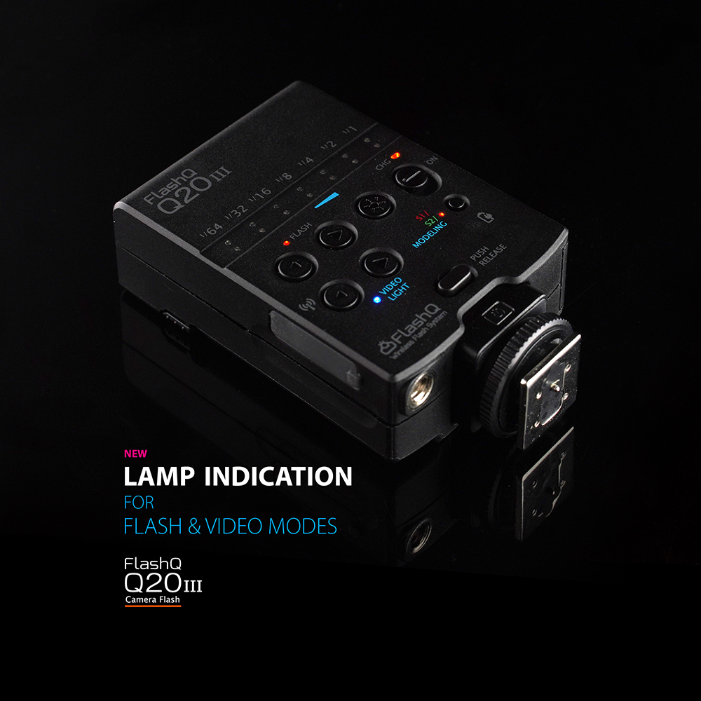 Lamp indication for Flash & Video modes มีไฟ LED แสดงสถานะของการเลือกใช้งานไฟแฟลช และไฟวิดีโอให้สังเกตได้ชัดเจนยิ่งขึ้น โดยไฟแสดงสถานะแฟลชจะเป็นสีส้ม และไฟแสดงสถานะไฟวิดีโอจะเป็นสีน้ำเงิน ให้สอดคล้องกับไฟ LED บอกระดับกำลังไฟ 7 ระดับ ที่ติดตั้งแสดงเป็นแผงทางด้านบน