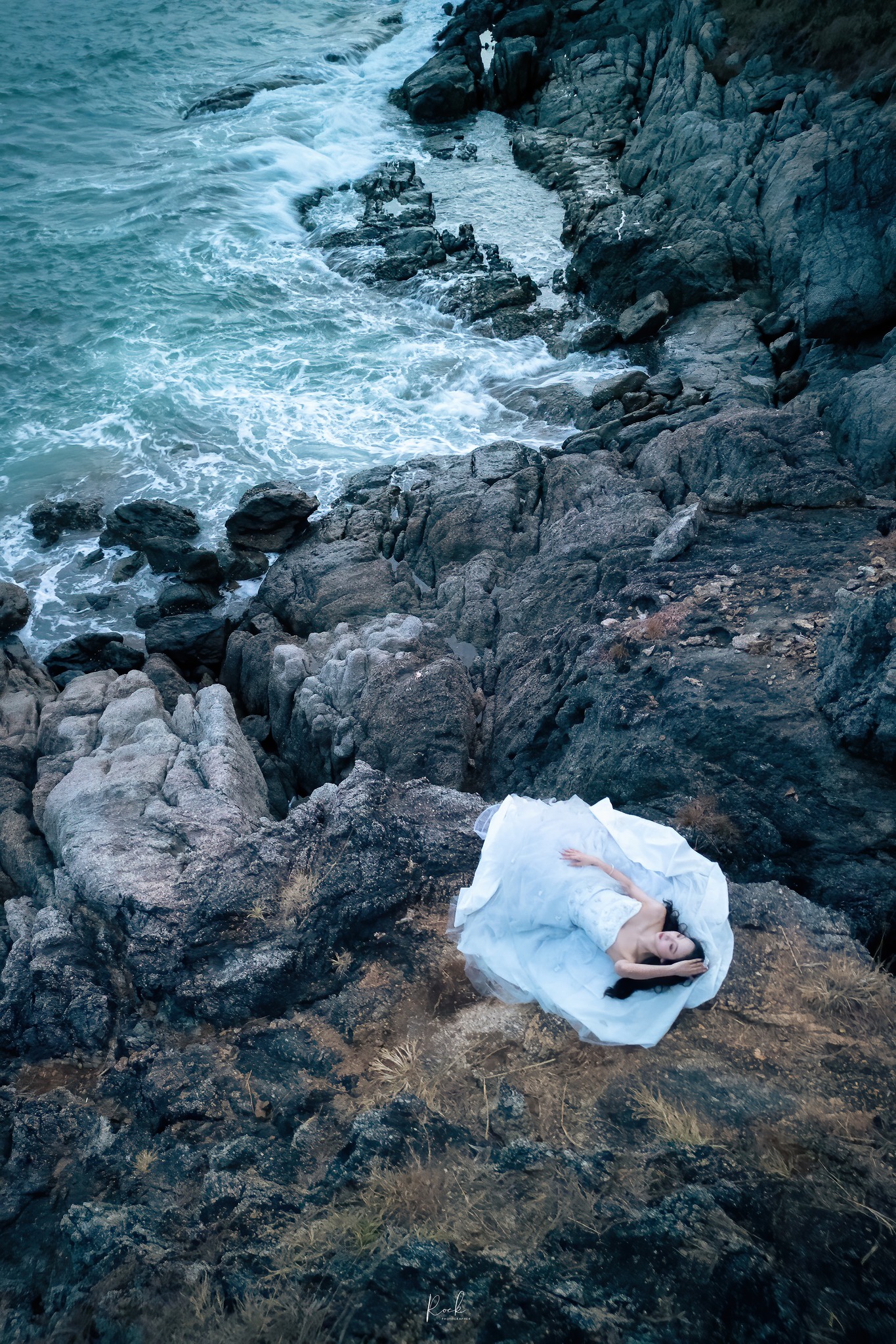 -2 ระหว่างเค้าถ่าย ทะเลคลื่น ต้นหญ้า หินภูเขา อยู่นั้น ก็มีเทพารักษ์ปรากฎตัวขึ้น ถามช่างภาพว่าเค้าได้ทำนางแบบหล่นหายลงไปในทะเลใช่หรือไม่ พร้อมทั้งเสกนางแบบใส่ชุดเจ้าสาวสวยงามให้ช่างภาพคนนั้น
