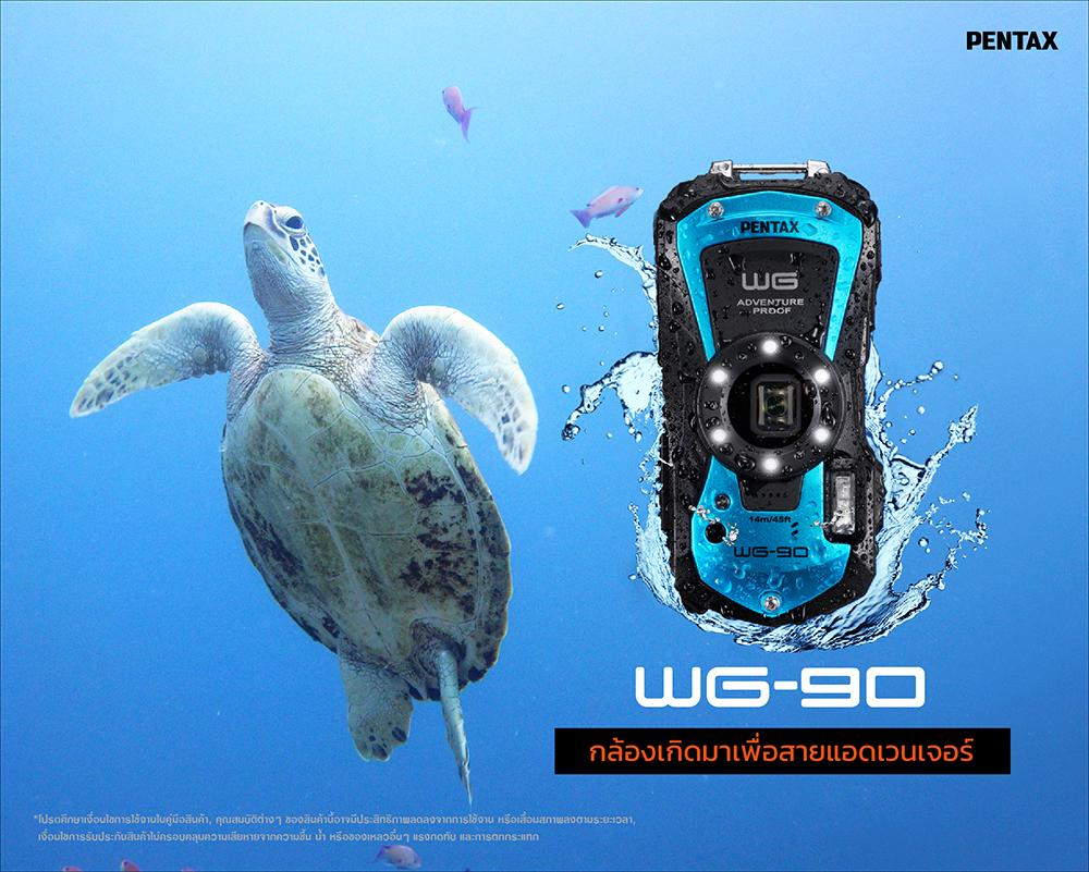 PENTAX WG-90 กล้องคอมแพคสำหรับสายลุยที่ต้องการกล้องที่บอดี้แข็งแรง มีสไตล์การออกแบบสวยงาม และมีฟังก์ชั่นโดดเด่นทั้งการใช้งานบนบก และใต้น้ำ..
