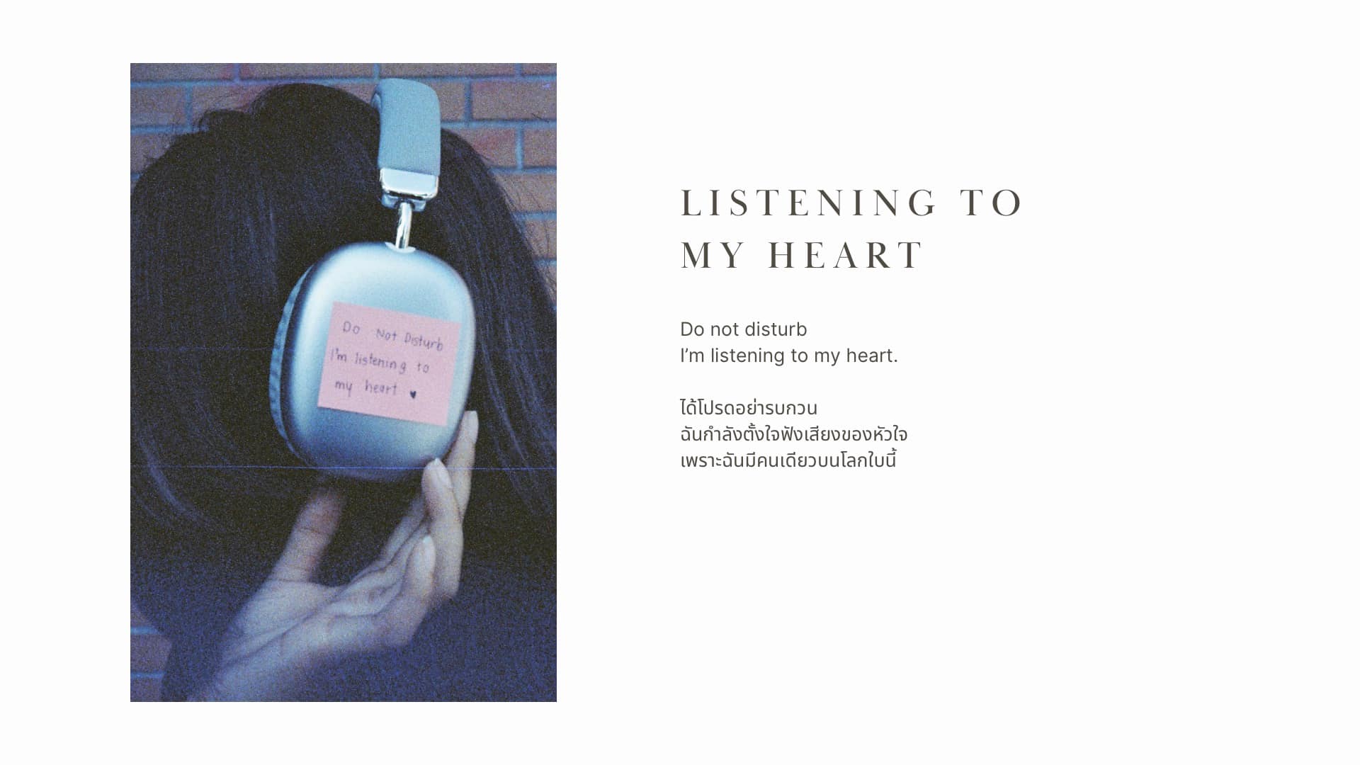 เปิดโหมดห้ามรบกวนในชีวิต โลกนี้วุ่นวายจนแทบไม่มีเวลาได้อยู่กับตัวเอง ถึงเวลากลับบ้านและฟังเสียงที่ดังที่สุดในใจฉัน เทคแคร์ และรักษาไว้ให้ดีที่สุด เพราะฉันมีคนเดียวบนโลก