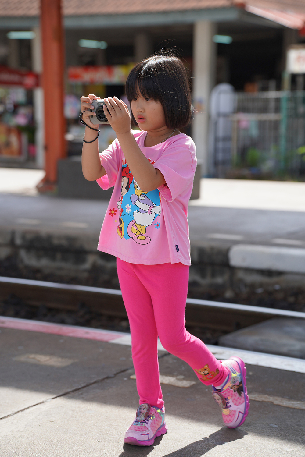 เราเองก็คอยเก็บภาพเบื้องหลัง และคอยดูแลอยู่ไม่ใกล้ไม่ไกล ด้วยเลนส์ Tamron 35-150mm F/2-2.8 Di III VXD(Model A058) ซึ่งเก็บได้ทั้งแบบเดี่ยว และแบบคู่ โดยไม่เข้าไปรบกวนสมาธิเด็กน้อยเวลาจะกดชัตเตอร์ บรรยากาศของผู้คนในสถานีรถไฟก็ให้ความเอ็นดู ส่งรอยยิ้มให้กำลังใจเด็กๆ ยอมเป็นแบบให้ฝึกทักษะแบบไม่ถามว่าถ่ายไปทำอะไร..