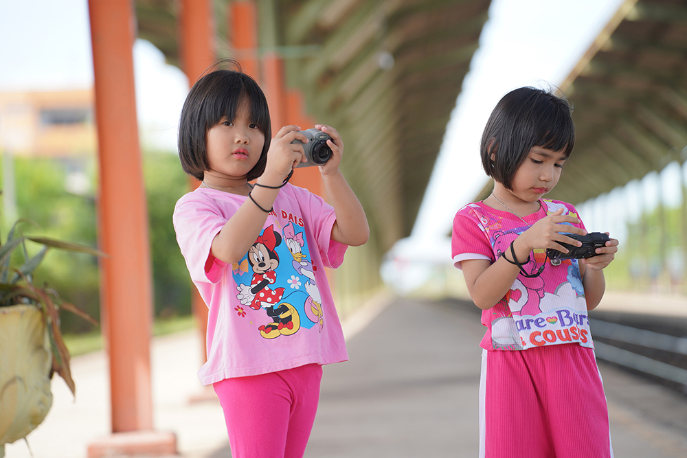 เราเองก็คอยเก็บภาพเบื้องหลัง และคอยดูแลอยู่ไม่ใกล้ไม่ไกล ด้วยเลนส์ Tamron 35-150mm F/2-2.8 Di III VXD(Model A058) ซึ่งเก็บได้ทั้งแบบเดี่ยว และแบบคู่ โดยไม่เข้าไปรบกวนสมาธิเด็กน้อยเวลาจะกดชัตเตอร์ บรรยากาศของผู้คนในสถานีรถไฟก็ให้ความเอ็นดู ส่งรอยยิ้มให้กำลังใจเด็กๆ ยอมเป็นแบบให้ฝึกทักษะแบบไม่ถามว่าถ่ายไปทำอะไร..