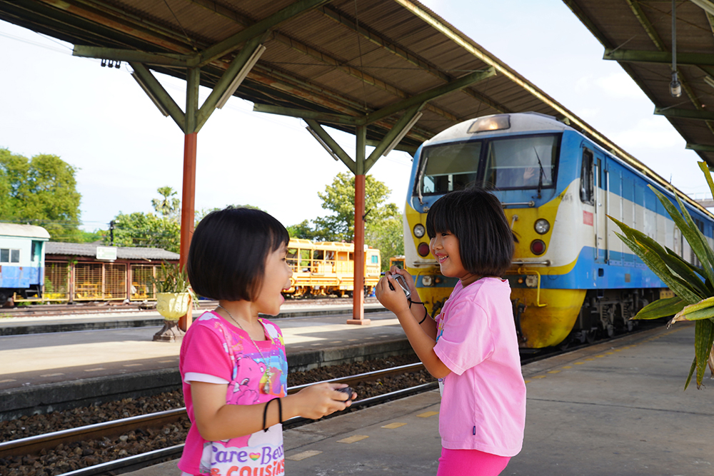 ห่างจากหน้าจอทีวี และสมาร์ตโฟนในวันหยุดบ้าง ซึ่งทั้งคู่ดูตื่นเต้นกับการพามาเที่ยวสถานีรถไฟเป็นครั้งแรก