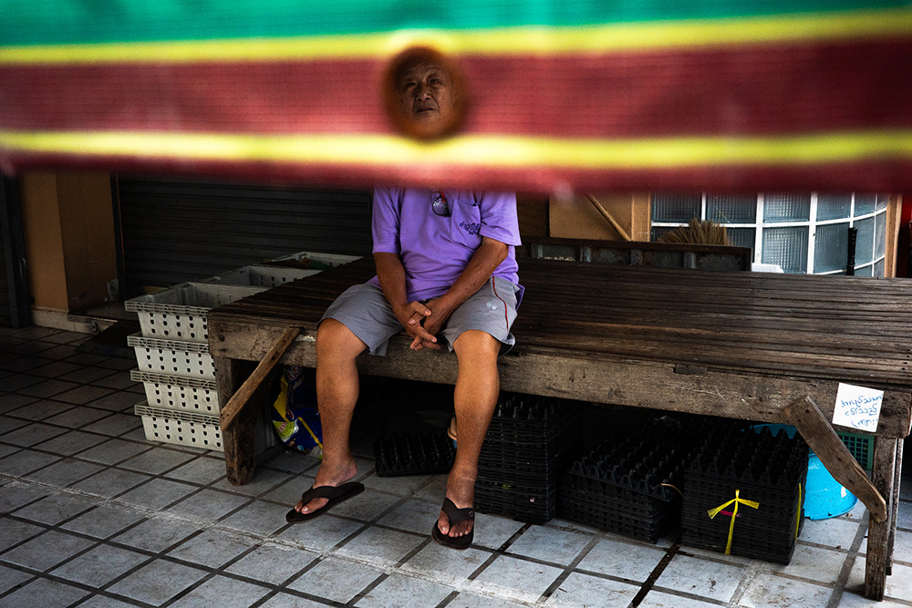 วันนี้ออกเดินแถวตลาดสด เดินส่องไปส่องมาได้ทุเรียนมา 1 แพ็ค ยังไม่ได้ภาพเลย ฮ่าๆ เลยเดินกลับไปที่รถคิดว่าจะเอาทุเรียนไปเก็บก่อน แต่ในระหว่างเดินกลับไปที่รถก็เจอซีนนี้ ที่คุณลุงกำลังนั่งเล่นอยู่ เราเลยว่างให้หน้าของลุงลอดผ่านรูของผ้าใบโฆษณา สรุปเรากลับบ้านไปกินทุเรียนครับวันนี้