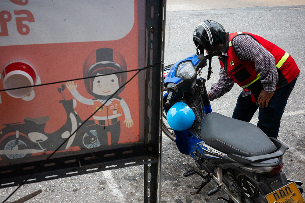 เห็นพี่วินกำลังล้างรถอยู่ แล้วสังเกตเห็นว่าป้ายดูล้อกันกับพี่วินดี เลยวางเฟรมถ่ายพี่เค้าไปเรื่อยๆ จนพี่เค้าย้ายไปล้างอีกฝั่งของตัวรถแล้วจังหวะพี่เค้าก้มลง หัวพี่เค้าตรงกับหมวกกันน็อคพอดีเลยคิดว่าชอบใบนี้ที่สุดครับ..