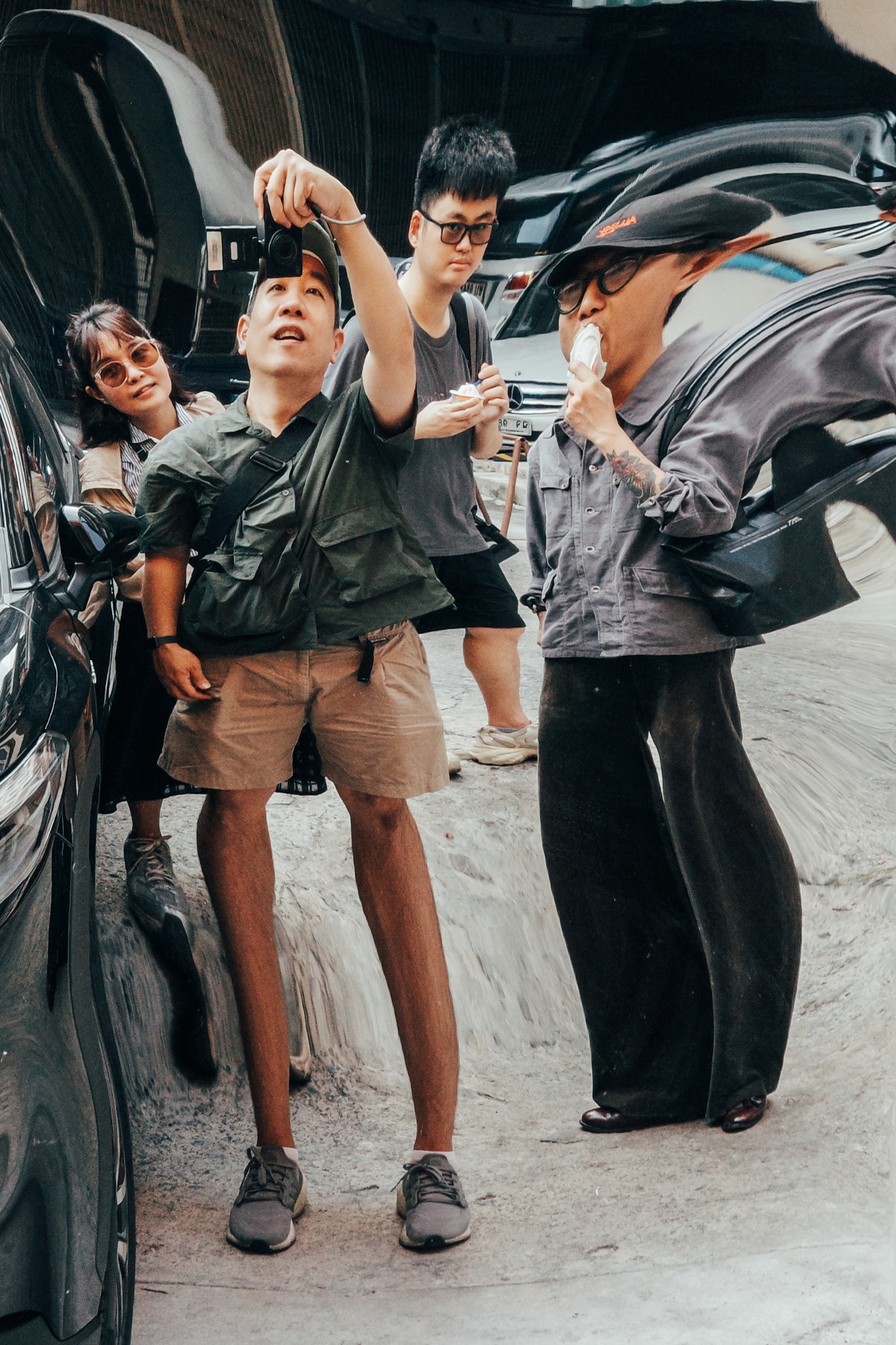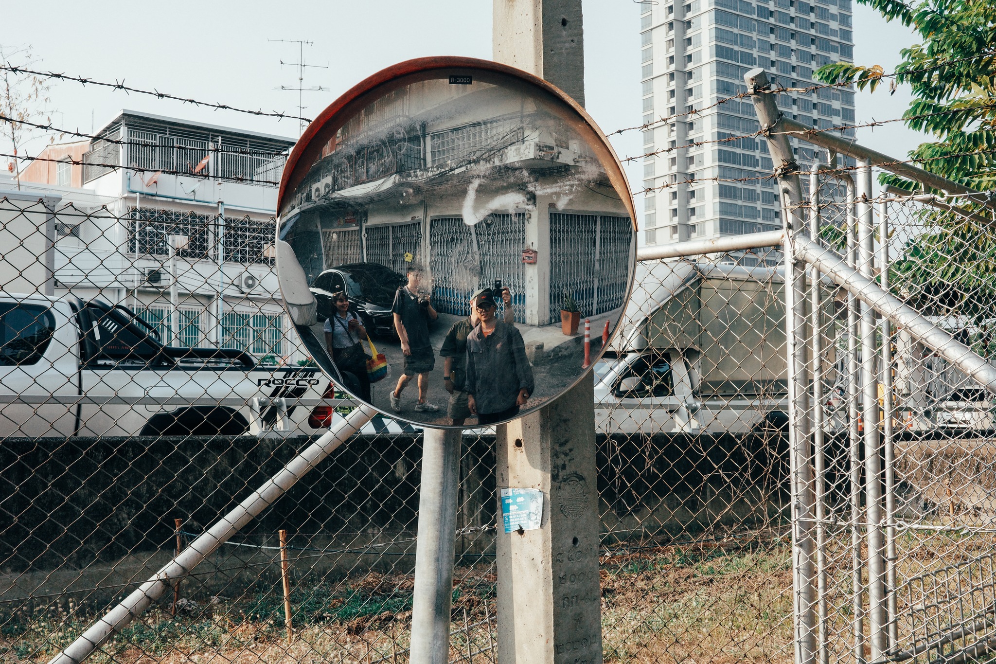 กลายเป็นความเคยชินของแก๊งค์นี้แล้ว เวลาออกไปเดินถ่ายภาพแล้วเห็นกระจกตามทางแยก ซึ่งความน่าสนใจของมัน คือ ความบิดเบือนของภาพ แต่ละจุดมันก็จะไม่เหมือนกันทีเดียว บางที่จะมีรอยบุบ เบี้ยว หรือเอียงๆ ภาพที่ได้ก็จะคาดเดาได้ยาก กลายเป็นภาพตลกก็มี ทำให้คิดถึงนักท่องเที่ยวชาวจีน ที่ก็นิยมถ่ายลักษณะนี้เหมือนกันมันเหมือนเป็นการถ่ายSelfie ไปในตัว