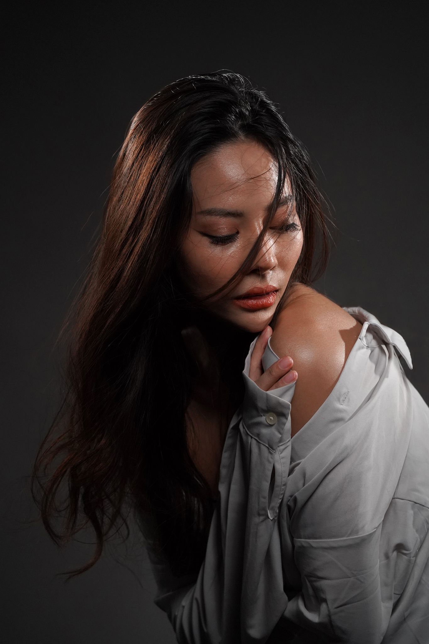 อาจนำมาจัดถ่ายภาพ Profile กันเองในบริษัท หรือในครอบครัวไปเลย เสิร์ชหาเทคนิคการจัดแสงในอากู๋มีแนะนำเยอะมากกกก ซึ่งการจัดแสงสไตล์ Low Key ก็เป็นการจัดแสงที่เน้นการขับอารมณ์ มีส่วนสีขาว สีเทาน้อย ฉากหลังมักเป็นโทนสีเข้ม เลนส์ที่ใช้งานจึงมักเลือกเลนส์ไวแสงหน่อย เพื่อจะได้ทำงานร่วมกับบอดี้กล้องในการหาโฟกัสได้รวดเร็วและแม่นยำ ส่วนใหญ่ก็จะใช้เลนส์ทางยาวโฟกัสระยะ 70mm ขึ้นไป เพื่อจะได้ยืนห่างจากตัวแบบพอประมาณ..เขาจะได้ไม่เกร็ง แล้วอาศัยการซูมระยะเลนส์ ทำให้ภาพมีมิติหลากหลาย เต็มตัว ครึ่งตัว สามส่วน โคลสอัพ ซึ่งปัจจุบันเลนสซูมอเนกประสงค์มันตอบโจทย์ในเรื่องนี้มาก จากประสิทธิภาพที่ถูกพัฒนามาไกลจากความเชื่อเดิมๆ ที่ว่าเลนส์ประเภทนี้ไม่เวิร์ก กลายเป็นคมจัด..ให้โทนสีดี ส่วนโฟกัสไวแค่ไหนก็ขึ้นกับระดับของบอดี้กล้องด้วย ใครยังไม่เชื่อ..ลองชมภาพชุดนี้ที่เก็บจังหวะอารมณ์นางแบบได้ไม่แพ้เลนส์โปรฯ